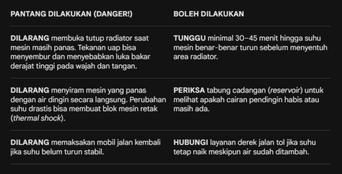 Jika Anda melihat indikator suhu naik saat di jalan tol, jangan panik. Ikuti prosedur keselamatan ini: